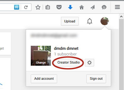 1. Buka halaman Creator Studio. Caranya klik aja icon kita pada sudut kanan atas, lalu pilih "Creator Studio".